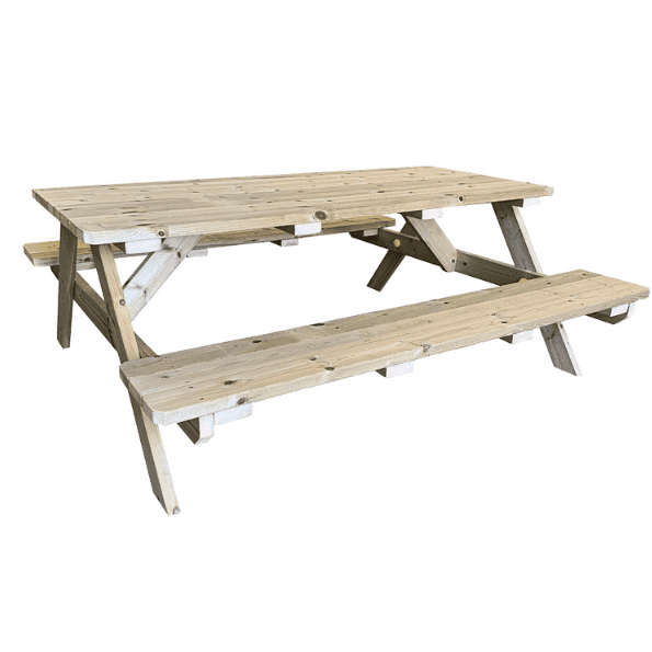 A Large Wooden Picnic Bench/Table for adults and older children. This robust and sturdy resource is ideal for any outdoor space, whether it be at home in the garden or in a school/nursery playground!