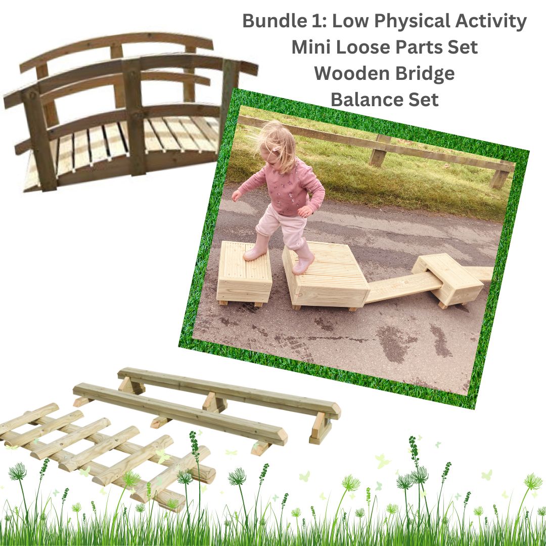 Bundle 1 is designed to develop gross motor skills. The climbing involved in these products is at low height. Suitable for younger children who are still develop confidence in climbing and Balancing