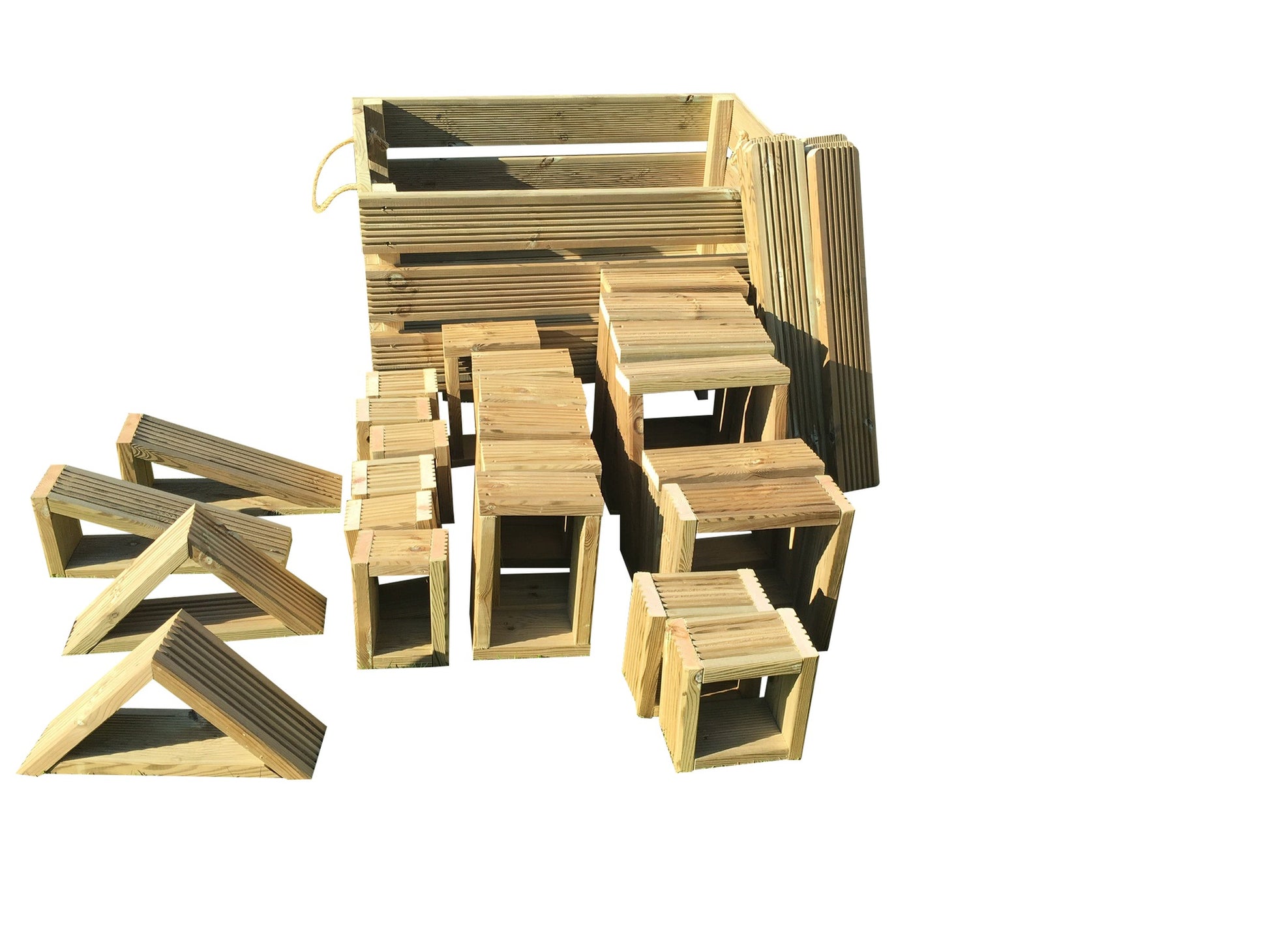 Wooden Blocks and Trolley - Different shaped blocks that compliment each other. A very much open ended resource with handy storage trolley.