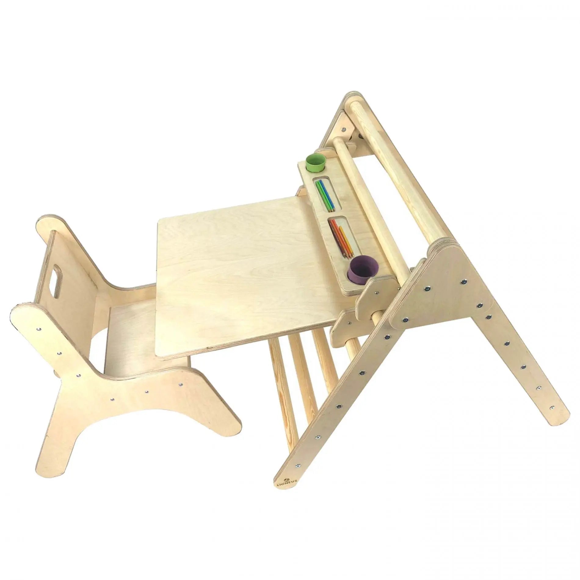 Junior Pikler Inspired Triangle, Junior Pikler Inspired Chair, Junior Pikler Inspired Desk Pen and Cup Holder, Junior Pikler Inspired Desk Board.