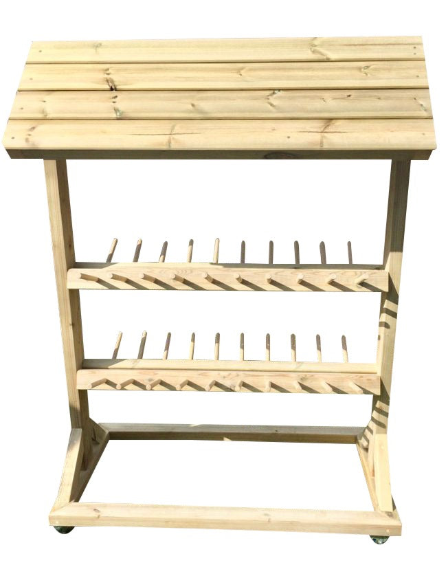 Outdoor play is fun in all weathers. Make sure your little ones are always prepared with our Wellie Boot Trolley which holds up to 20 pairs of wellington boots. The overhanging roof adds some protection from the elements.