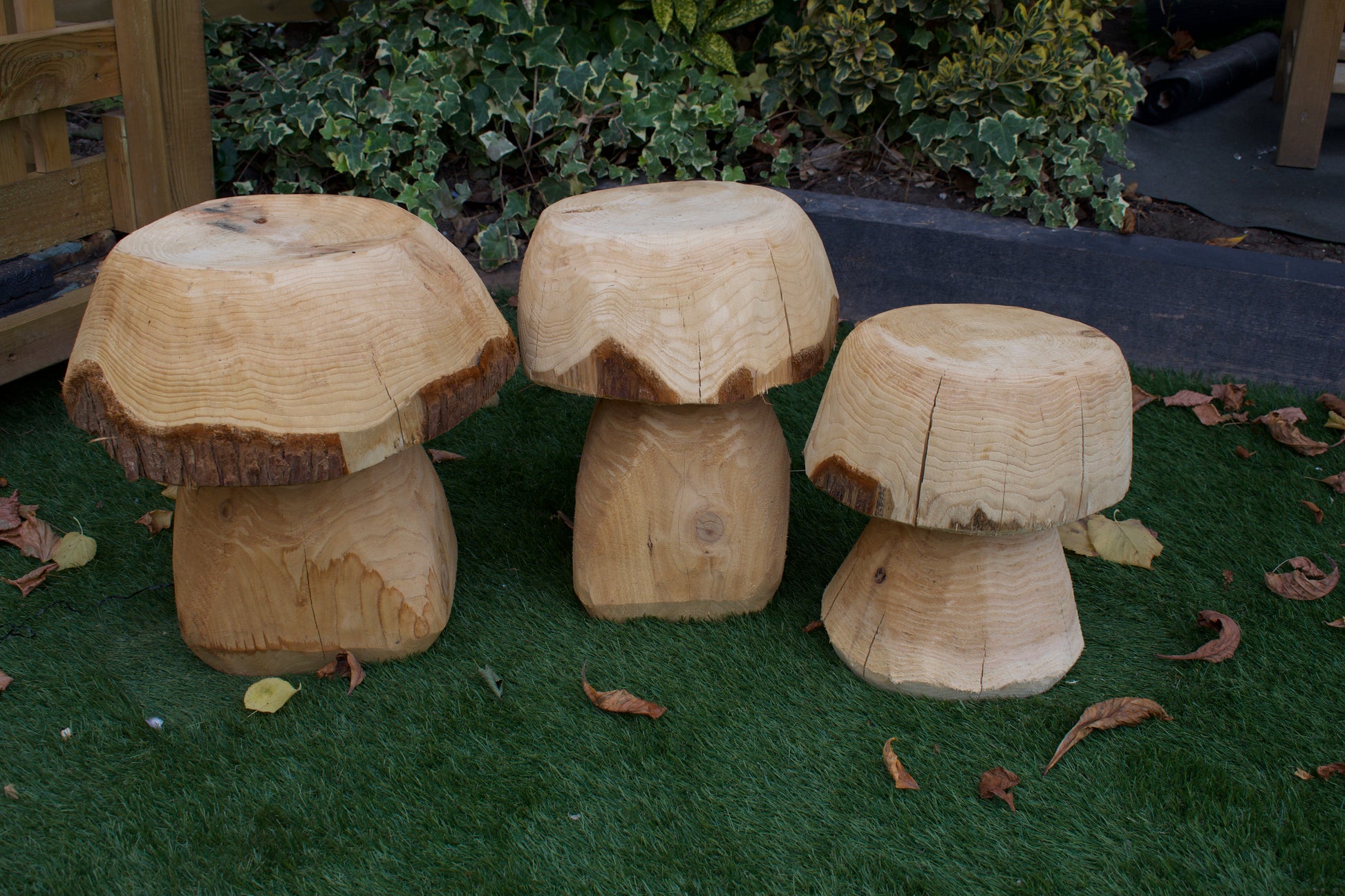 Our unique Mushroom Seats are handcarved out of a single piece of durable wood. They look great in any garden, school or nursery setting, enhancing the space, brightening any dark corner!
